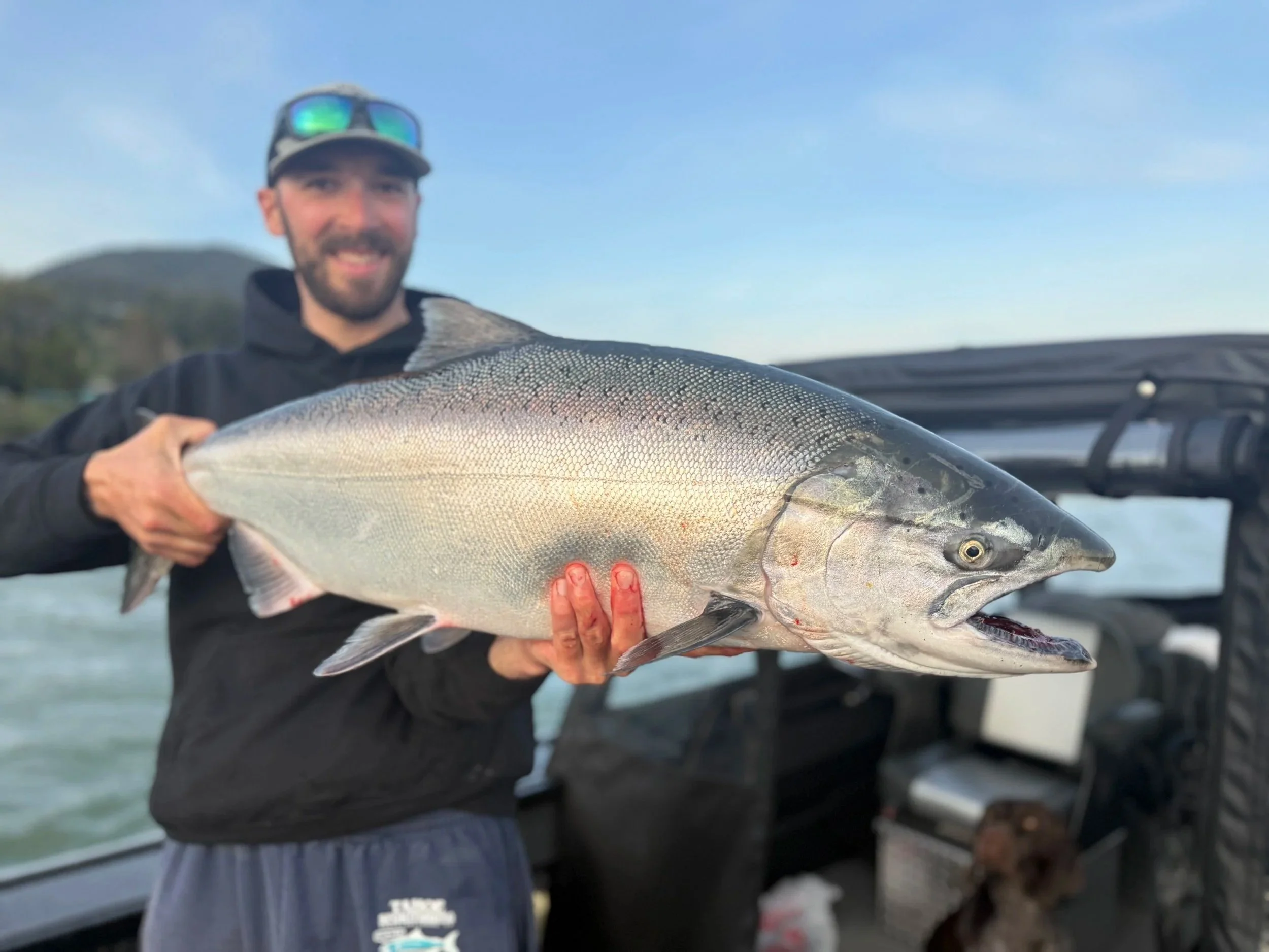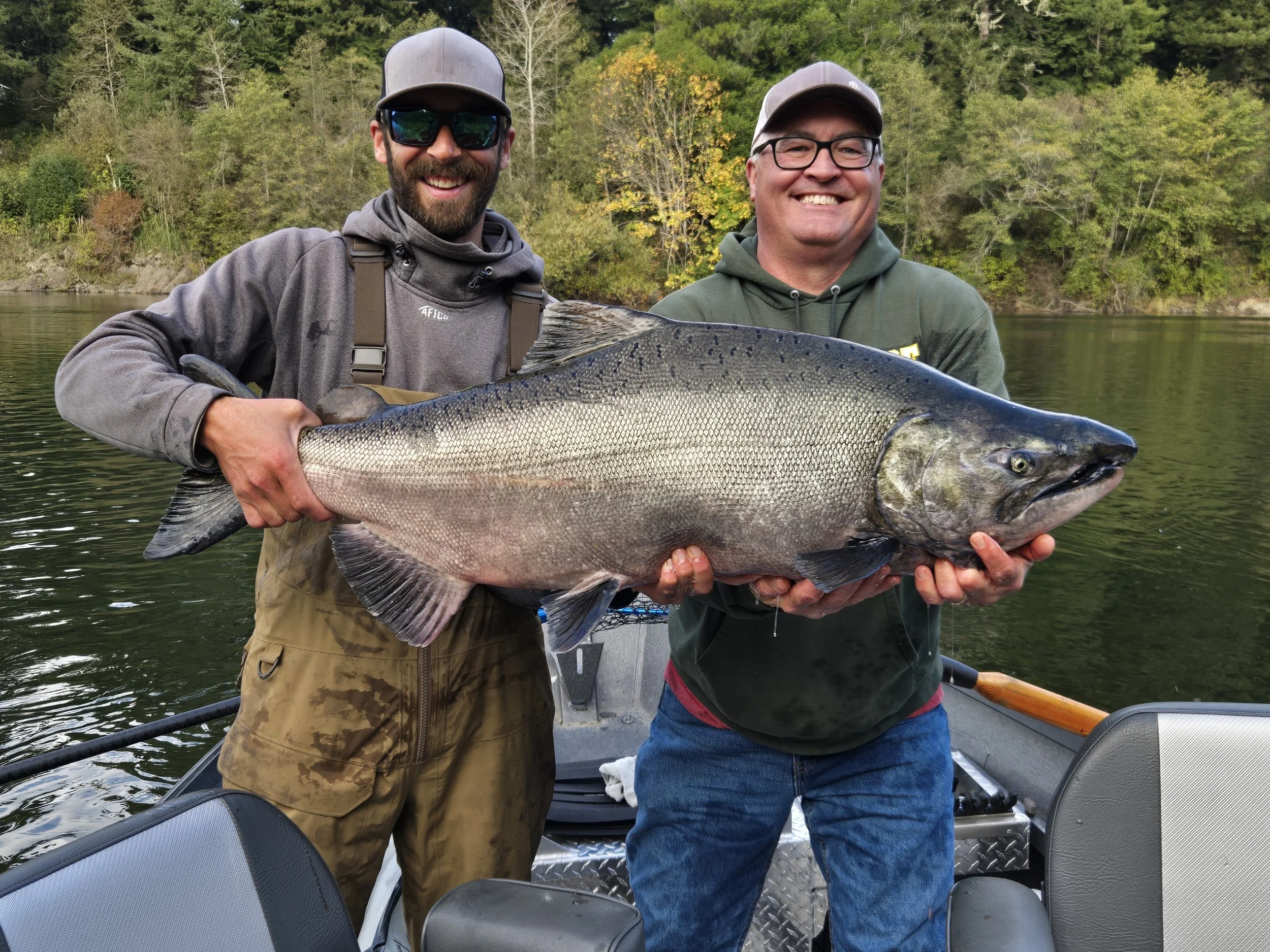 fall chinook fishing begins in late October early November when the first rain hits the coast, we chase these magnificent creatures upriver in a 17/60 willie drift boat with a heater on board for those chilly fall mornings and rainy days as they make their way upriver to spawn. spots are limited too 2 people per boat. we target these fish back bouncing bait and backtrolling plugs. This time of year is when we normally see our largest salmon of the season! November-December